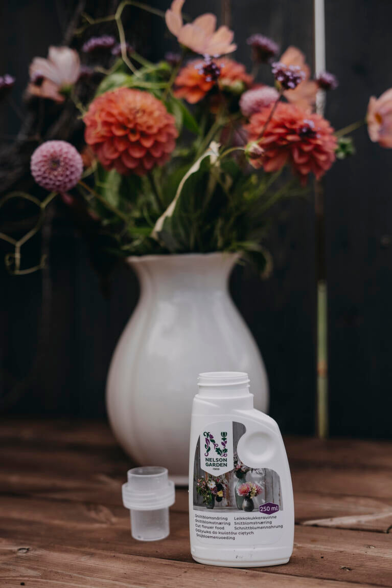 Forlenger holdbarheten til snittblomster i vase. Løsningen er fargeløs og hverken synes eller misfarger, men holder vannet i vasen friskt lenger. Konsentrat.