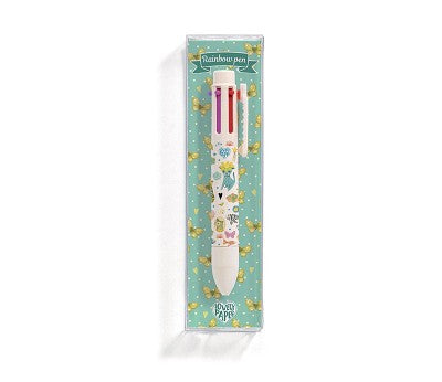 Grønn regnbuepenn fra Djeco. Denne klassikeren i serien Lovely Paper fra Djeco hører hjemme i et hvert pennal! Pennen kan skrive i seks ulike farger ved å trykke ned de forskjellige alternativene i toppen. Skal du skrive med rød, rosa, lilla, blå, grønn eller oransje i dag? Et populært tegne- og skriveredskap for skolebarna og en anledning til å spare plass til andre morsomme ting i pennalet.