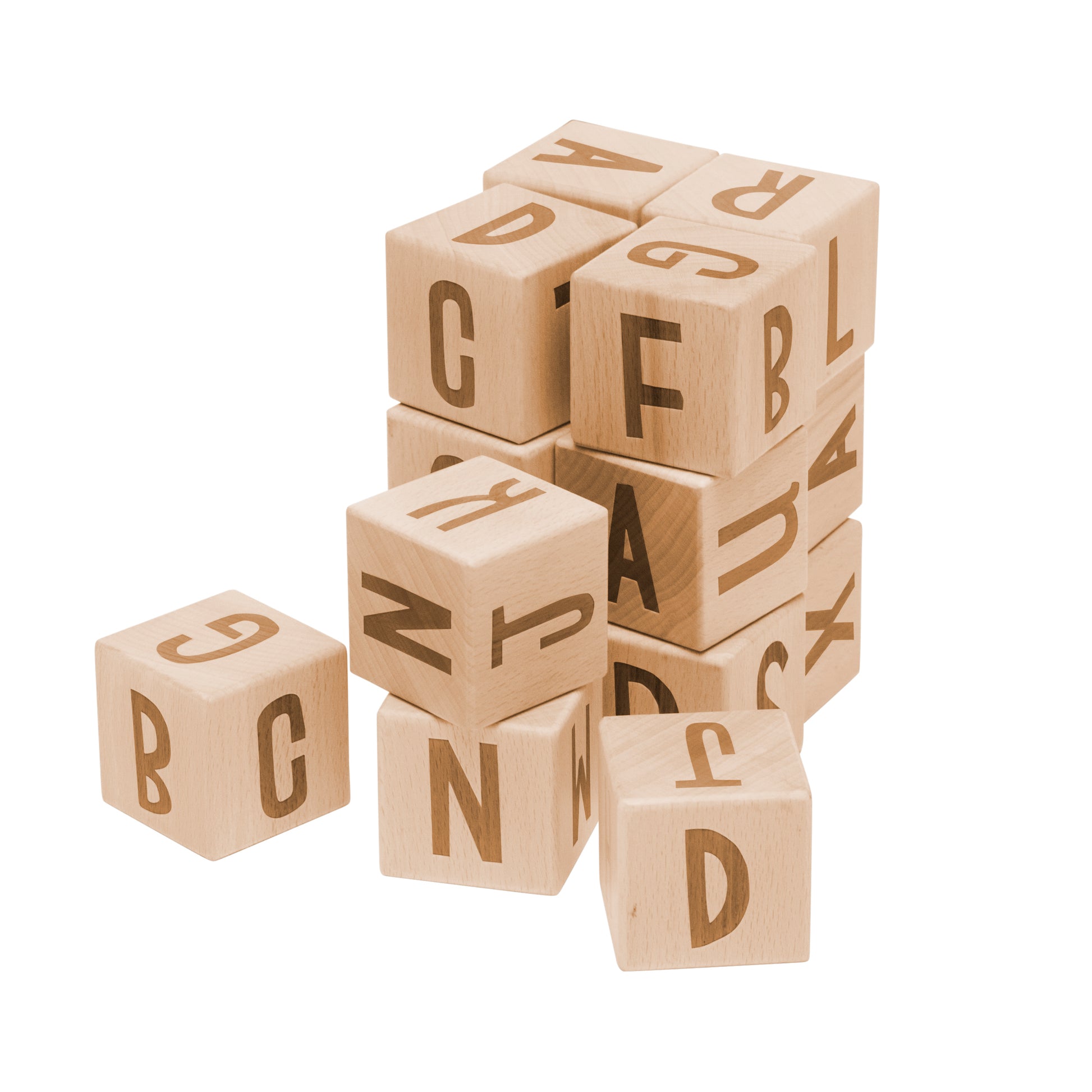 Det er 16 klosser i pakken, med det engelske alfabetet + spesialtegn som Æ,Ø,Å.